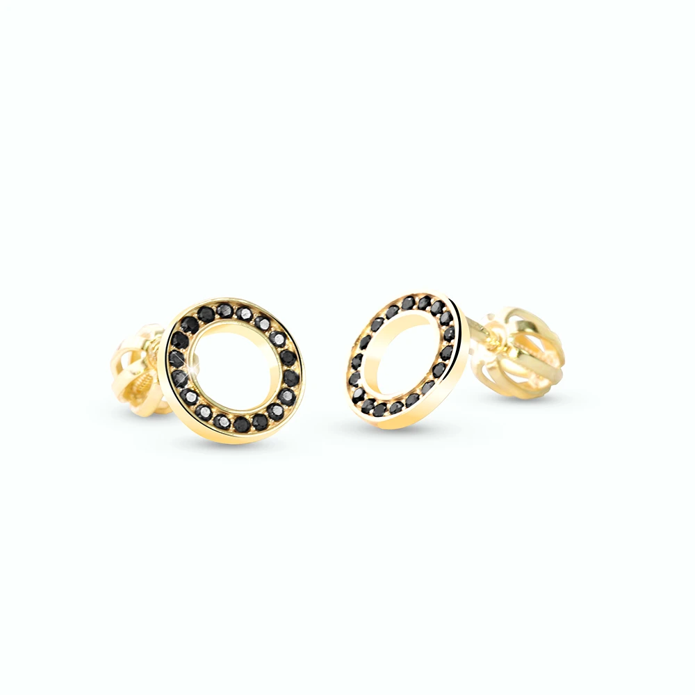 Zlaté náušnice se zirkony. Krásné dámské náušnice, které dodají vašemu vzhledu šmrnc, ať se chystáte na slavnostní večeři, nebo jen tak na párty s přáteli. Díky jejich kruhovému tvaru se náušnice pohodlně nosí. Pokud hledáte zlaté náušnice, které zdůrazní vaši krásu a osobnost už dále nehledejte, právě jste je našli. Neváhejte a pořiďte zlaté náušnice se zirkony pro Vás, nebo pro Vaše blízké.