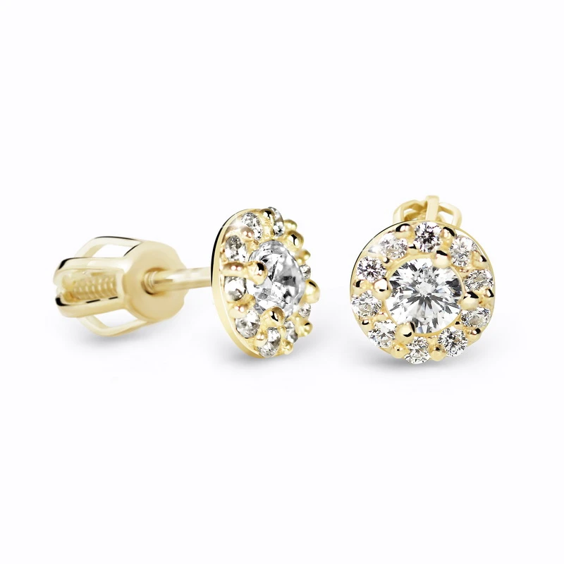 Náušnice na šroubek zlaté se zirkony od českého návrháře a výrobce luxusních zlatých šperků a dětských náušnic Cutie Jewellery. Klasické pecky, které díky náušnicovému zapínání na šroubek při nošení netlačí a jsou vhodné pro každou příležitost. Všechny zlaté šperky nabízené našem obchodě jsou řádně označené podle puncovního zákona.