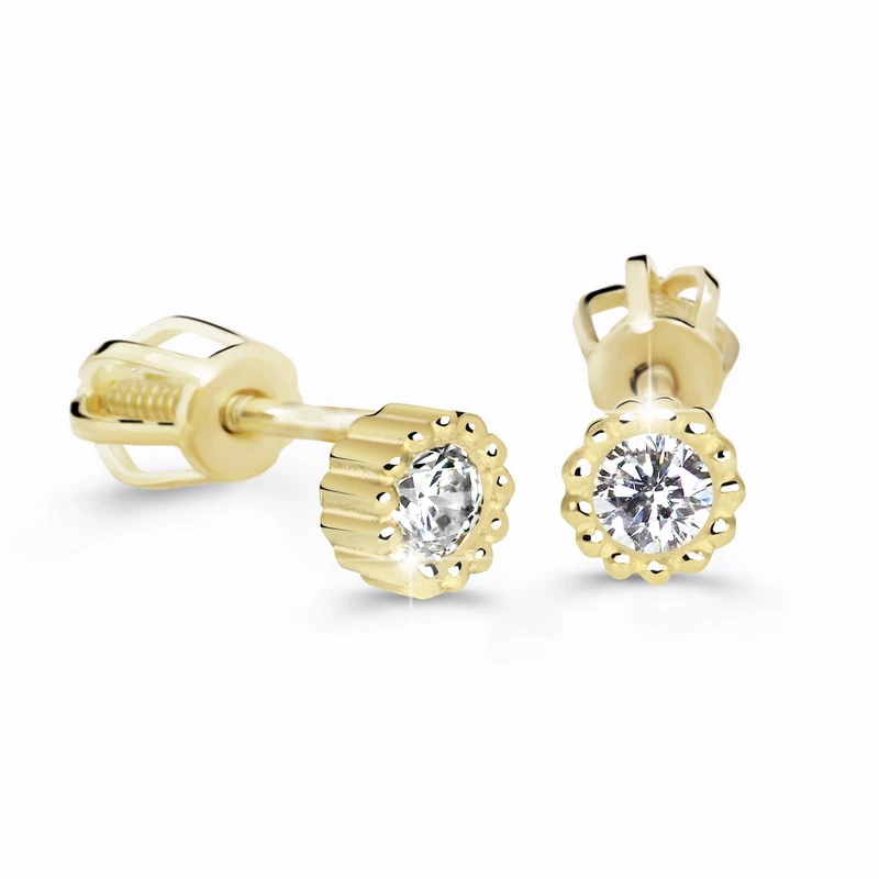 Náušnice na šroubek zlaté se zirkony od českého návrháře a výrobce luxusních zlatých šperků a dětských náušnic Cutie Jewellery. Klasické pecky, které díky náušnicovému zapínání na šroubek při nošení netlačí a jsou vhodné pro každou příležitost. Všechny zlaté šperky nabízené našem obchodě jsou řádně označené podle puncovního zákona.