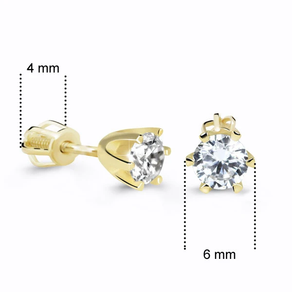 Zlaté náušnice se zirkony vyrobené zlata ryzosti 585/000. Náušnice zlaté s průměrem ozdoby 6 mm. Naušnicové zapínání na je na šroubek. Průměr šroubovacího zapínání 4 mm.