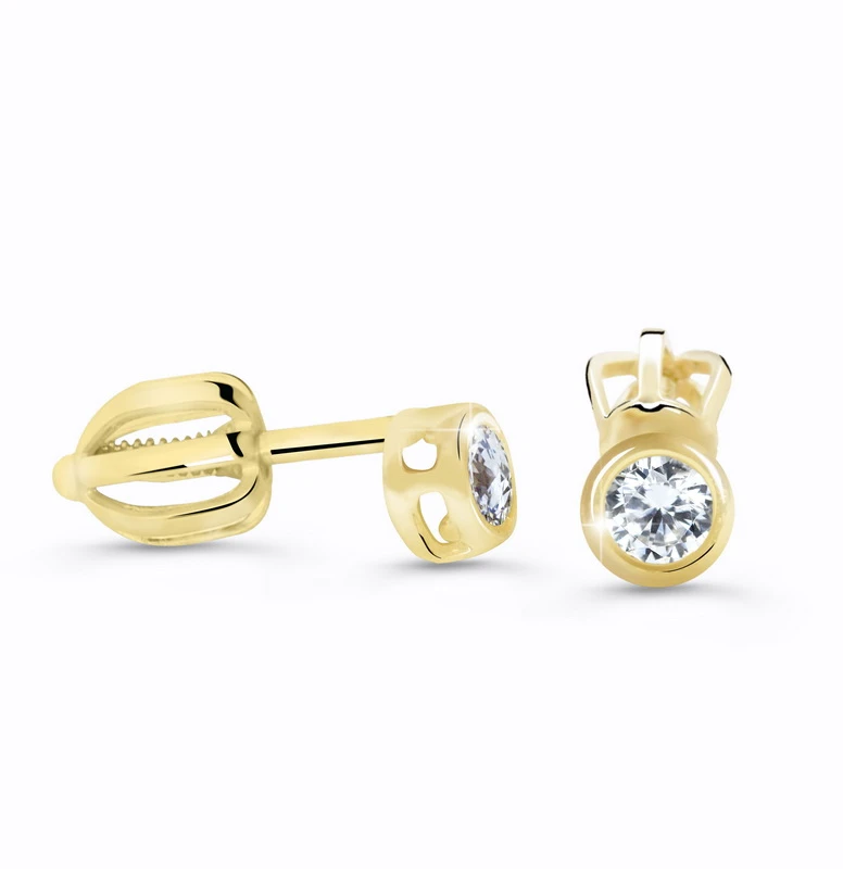 Náušnice na šroubek zlaté se zirkony od českého návrháře a výrobce luxusních zlatých šperků a dětských náušnic Cutie Jewellery. Klasické pecky, které díky náušnicovému zapínání na šroubek při nošení netlačí a jsou vhodné pro každou příležitost. Všechny zlaté šperky nabízené našem obchodě jsou řádně označené podle puncovního zákona.