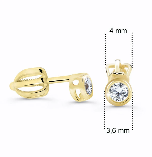 Zlaté náušnice se zirkony vyrobené zlata ryzosti 585/000. Náušnice zlaté s průměrem ozdoby 3,6 mm. Naušnicové zapínání na je na šroubek. Průměr šroubovacího zapínání 4 mm.