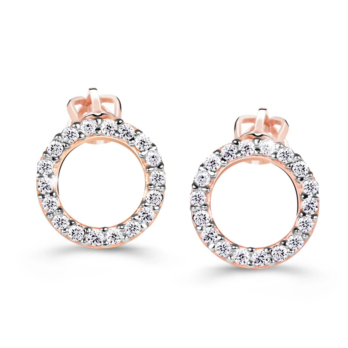 Zlaté náušnice pecky se zirkony vyrobené zlata ryzosti 585/000. Zlaté naušnice s průměrem ozdoby 8 mm. Naušnicové zapínání na je na šroubek. Průměr šroubovacího zapínání 4 mm.