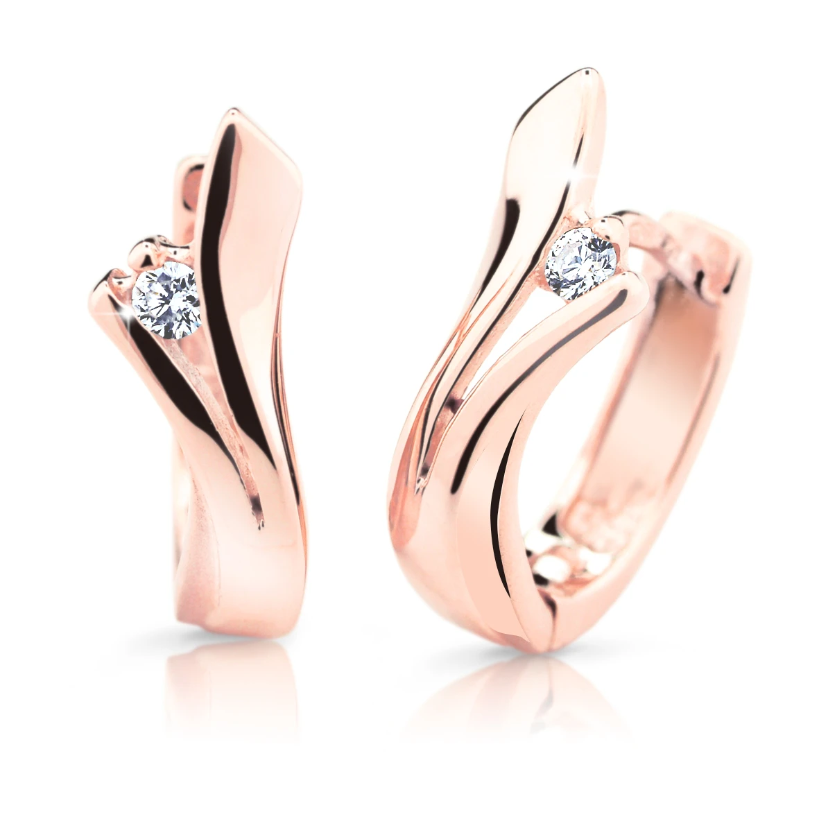 Zlaté náušnice se zirkony z růžového 14.ti karátového zlata. Dámské zlaté náušnice oválného tvaru. Díky oválnému tvaru náušnice netlačí, nezachytávají a pohodlně se nosí. Náušnice mají kloubové zapínání. Rozměry náušnic najdete zobrazené na podpůrné fotografii.