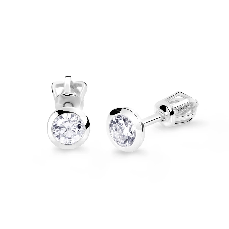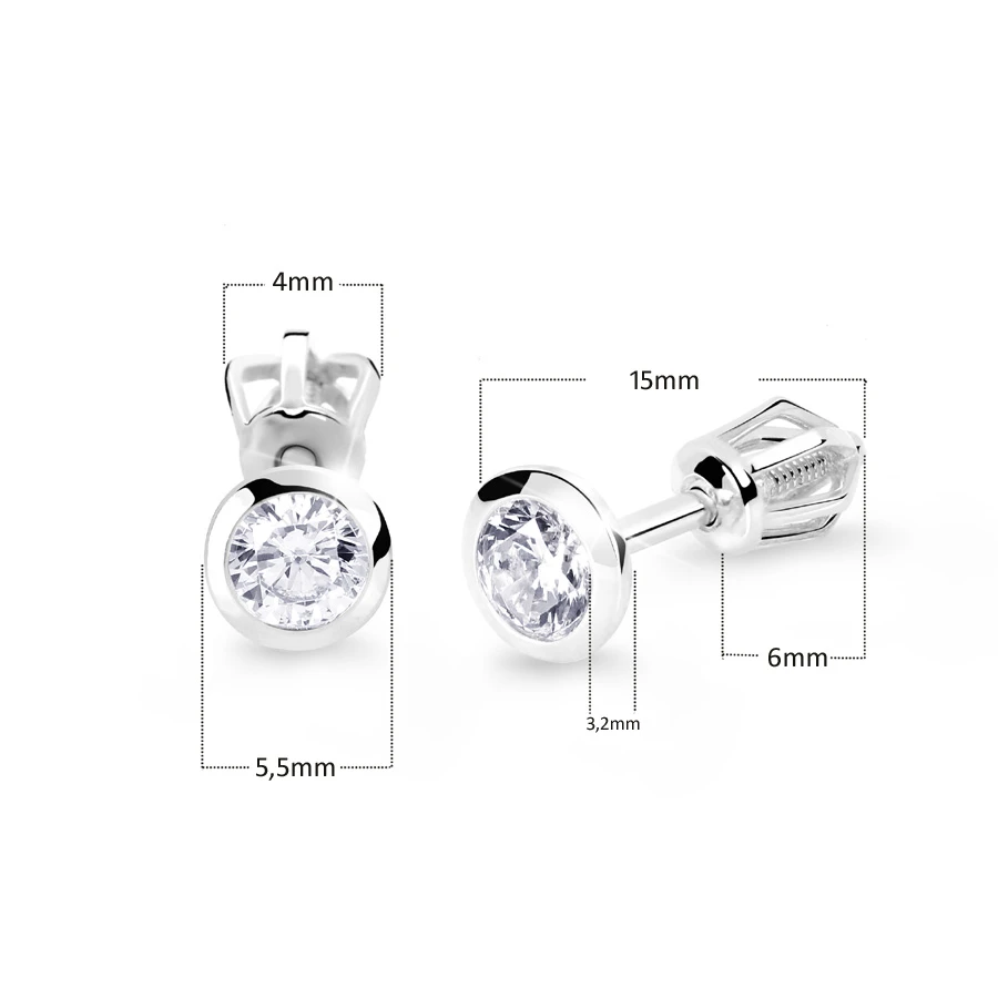Náušnice z bílého zlata se zirkony. Zlaté náušnice pecky se zapínáním na šroubek. Rozměry náušnic naleznete zobrazené na podpůrném obrázku.