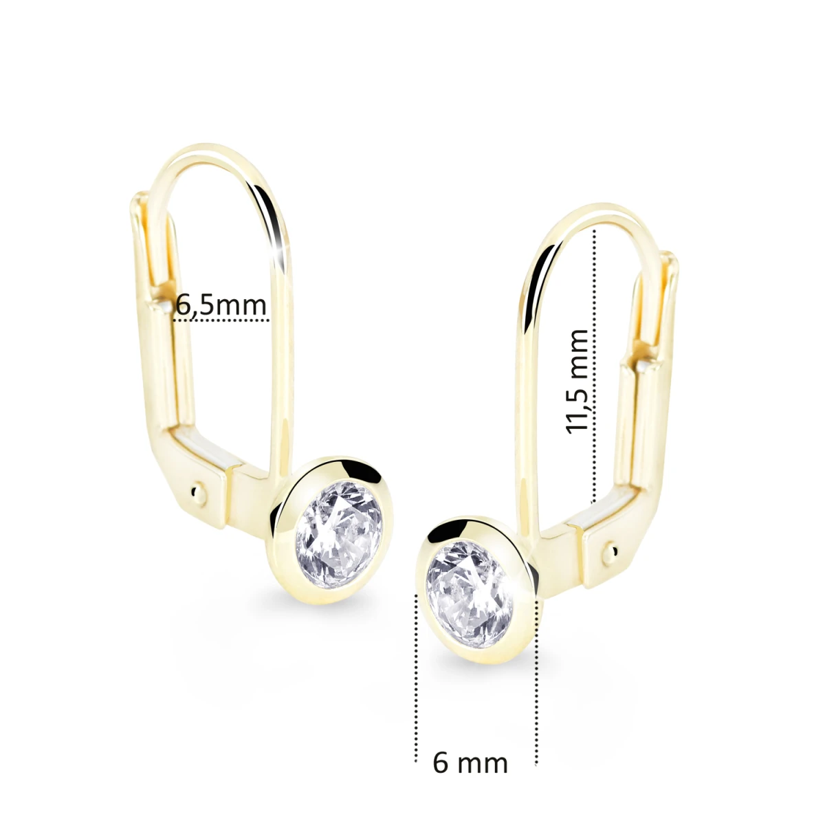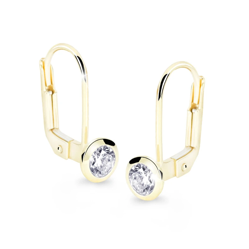 Zlaté náušnice se zirkony ze žlutého 14.ti karátového zlata. Dámské a dívčí náušnice se zirkony. Náušnicové zapínání je na klapku. Rozměry náušnic najde přehledně zobrazené na podpůrné fotografii.