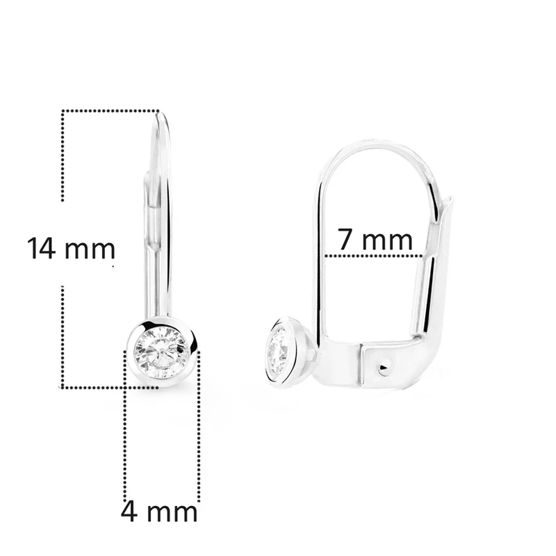 Zlaté náušnice se zirkony z bílého 14.ti karátového zlata. Dívčí náušnice se zirkony. Náušnicové zapínání je na klapku. Rozměry náušnic najde přehledně zobrazené na podpůrné fotografii.