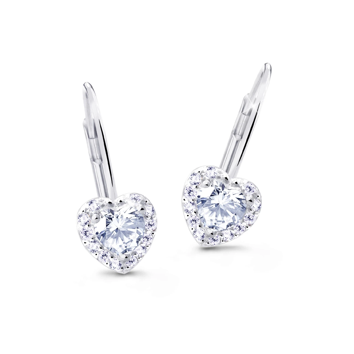 Zlaté visací náušnice srdíčka z bílého zlata ryzosti 585/1000. Náušnice zdobí zirkony a jsou určené pro ženy a dívky. Náušnicové zapínání je na klapku. Rozměry náušnic 15x6,2x6,2mm, najdete přehledně zobrazené na podpůrné fotografii. Krásné zlaté visací náušnice se srdíčky pro vaše drahé.