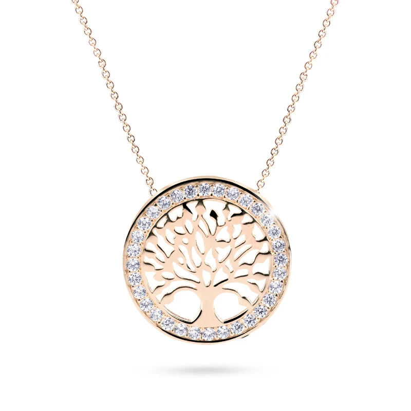 Dámský náhrdelník z růžového zlata 585/1000. Ozdoba se stromem života má průměr 15mm. Strom života je dokola osazený prvotřídními zirkony. Délku náhrdelníku lze pomocí nastavovacího řetízku upravovat v rozmezí 42-45cm.