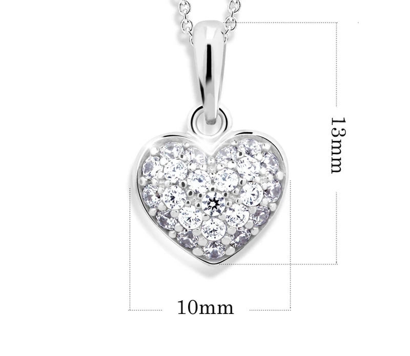 Přívěšek na řetízek srdíčko z bílého zlata ryzosti 585/1000. Přívěsek je celý ozdobený zirkony. Závěsným očkem na přívěsku lze protáhnout zlatý řetízek s průměrem do 2,0mm. Srdíčko má rozměr 8x10mm. Celkové rozměry přívěsku najdete zobrazené na podpůrné fotografii.