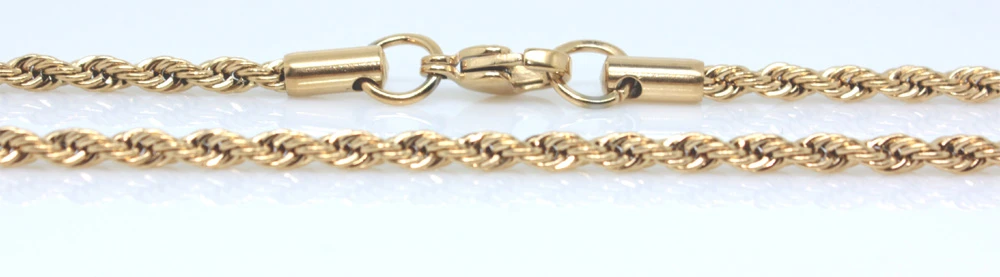 Řetízek z chirurgické oceli s povrchem upraveným technologií PVD na zlatou. Povrch řetízku je leštěný. Řetízek má karabinové zapínání. Průměr řetízku 3mm, délka 60cm.