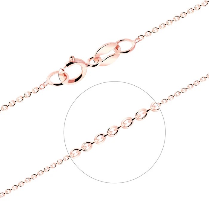 Jemný řetízek typu ankr z růžového zlata 585/000. Lehký zlatý řetízek, který není dutý, proto je vhodný na zavěšený zlatého přívěsku. Řetízek z růžového zlata se zapínáním na pérový kroužek. Očka řetízku jsou široká 1 mm.